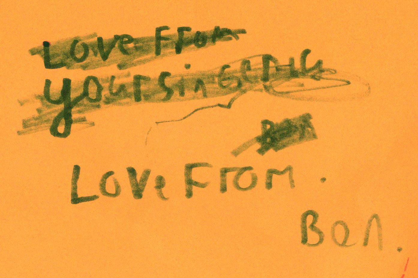Ben was uncertain as to the level of formality required when signing a Mother’s Day card.