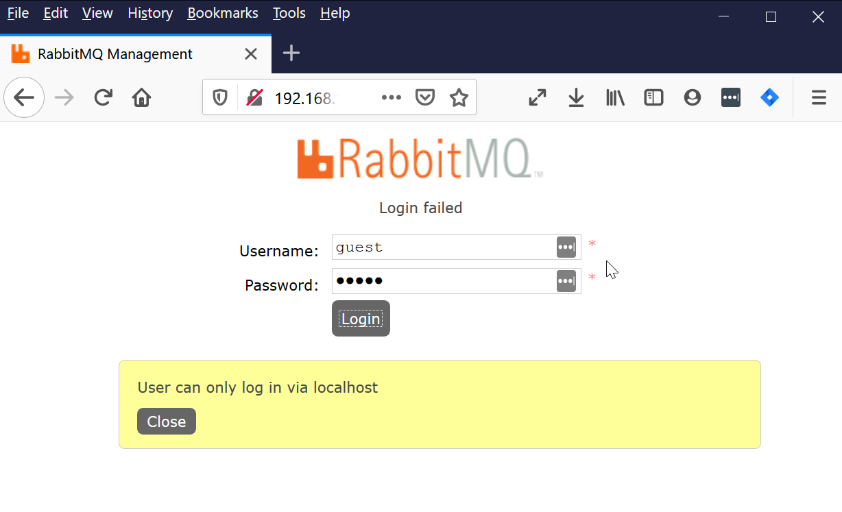 There are a couple of solutions to this quandary. The rabbitmq.conf file created earlier could be edited to allow the guest user to connect from a remote host by setting the loopback_users configuration to none – details here.