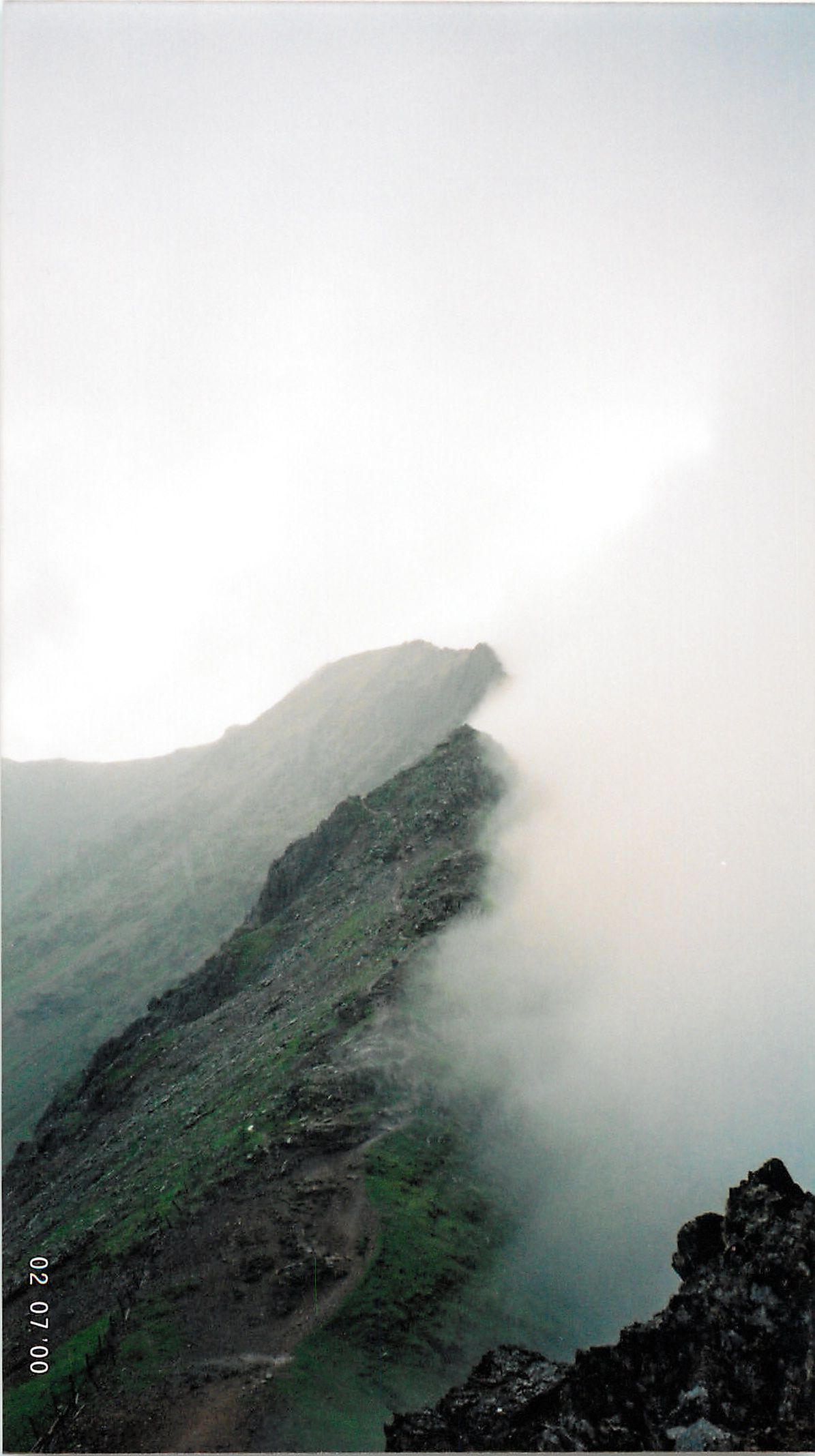 Similarly to my traverse of the Aonach Eagach ridge last year, the scale of the perilous drops aside me were hidden by cloud.
